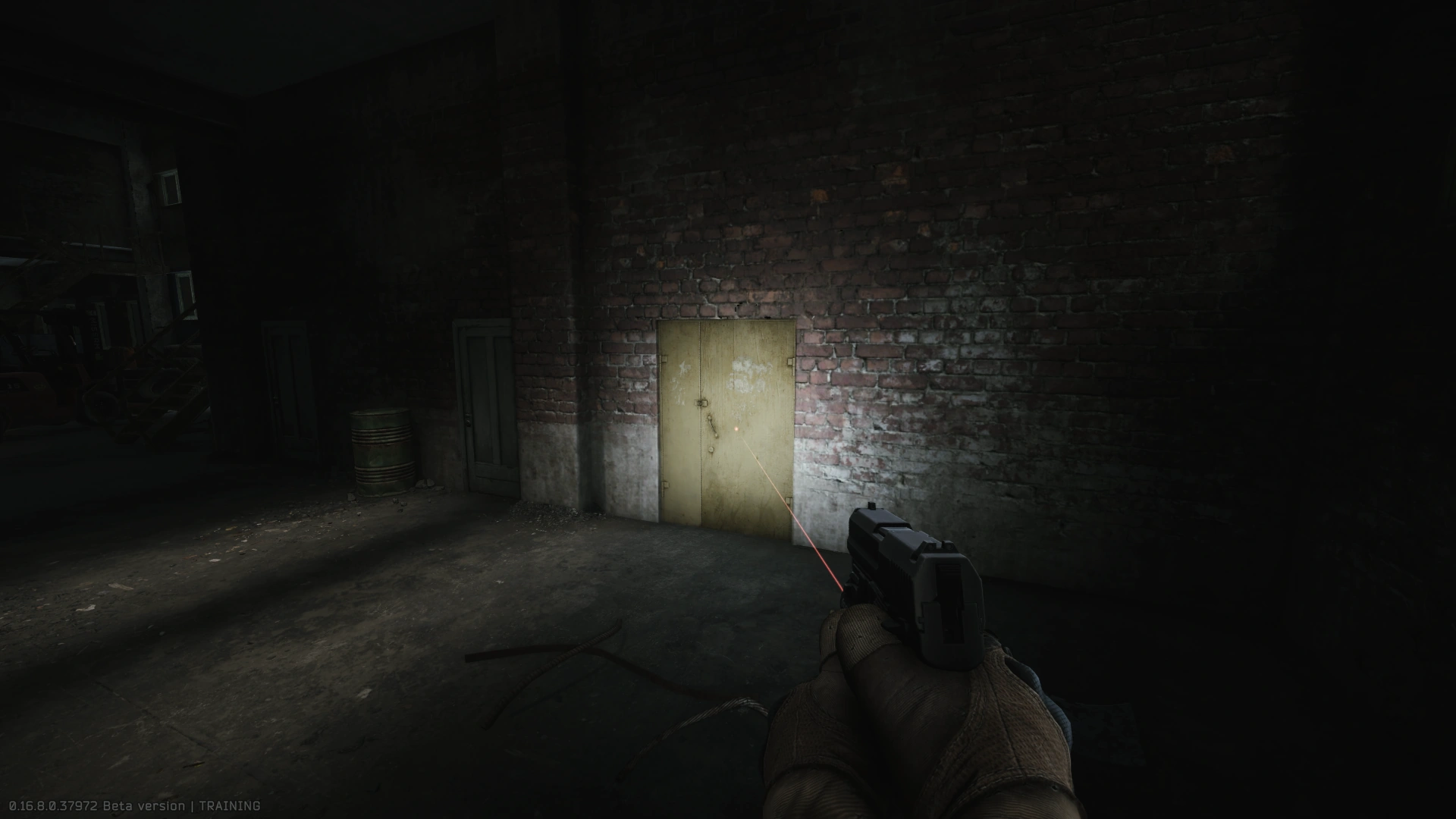 - Первая дверь находится под металлической лестницей.