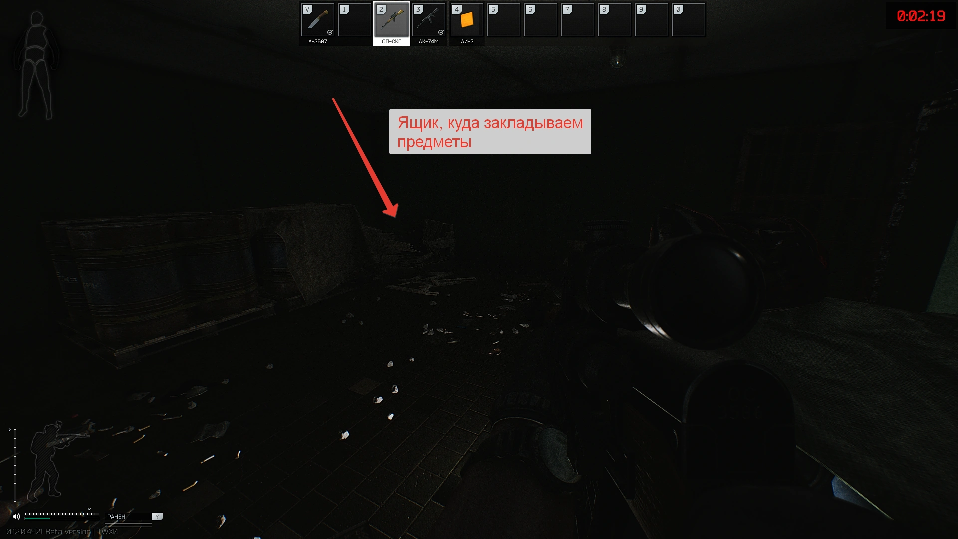Отправляемся на локацию Лес, посмотрите карту, если не знаете, где находятся бункеры. Закладываем предметы, перечисленные в задании. Место закладки - первые залы бункеров, в разбитые ящики.