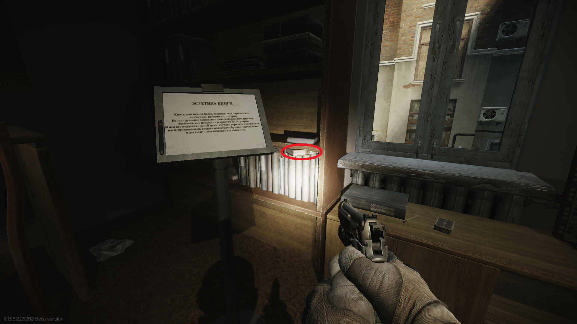 Next to the books, on the close bookshelf opposite second spawn location.